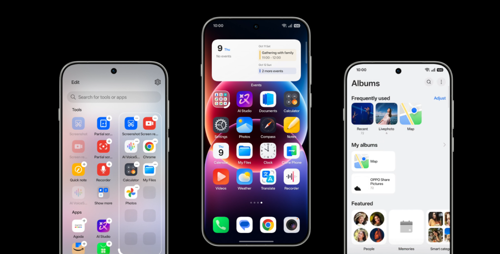 The OS includes Automated generated theme that automatically to your wallpaper screen colorOS16 can recommend matching fonts, icon styles, and colour petettes to create a unified visual look. You can choose from a wide range of background static images, motion photos allowing for a more dynamic and expressive home screen experience. Color OS 16 also introduces upgraded UI customization features such as a revamped Always On Display, modern lock screen layouts and dynamically resizable folders and icons. Together these elements influence how colours and UI layers interact, making the overall theme feel more fluid, adaptive, and personalized to your style.